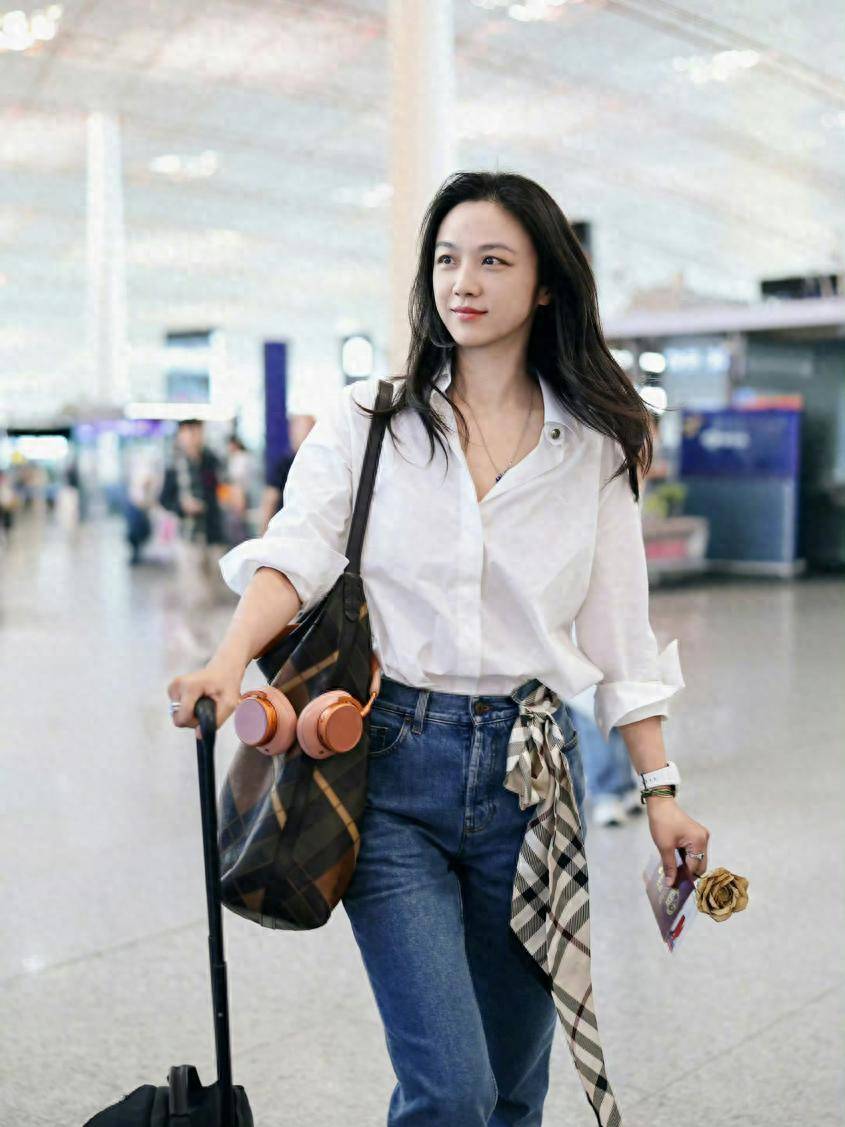 真正令人过目难忘的“贵气感女人”,穿着通常不会过于花哨。以汤唯出席 BURBERRY 大秀前的那套白衬衫与牛仔裤搭配为例,即便没有显眼的 logo,依然极具吸引力。
